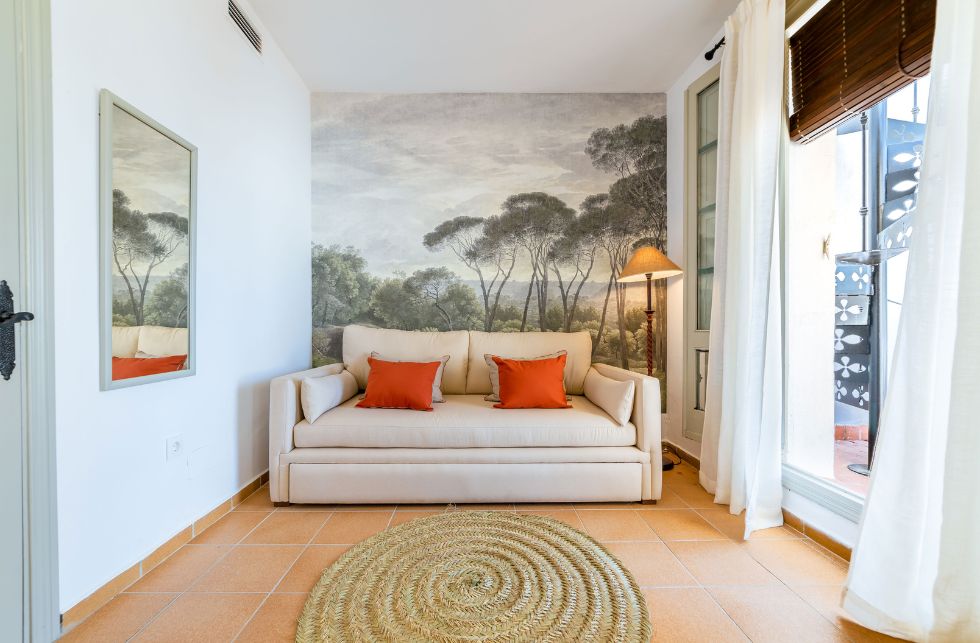 Espaciosos salones equipados con mobiliario tradicional de gran comodidad que te permitirán contemplar la inmensa marisma desde amplios ventanales llenos de luz. Patios interiores, solarium y habitaciones totalmente equipadas.